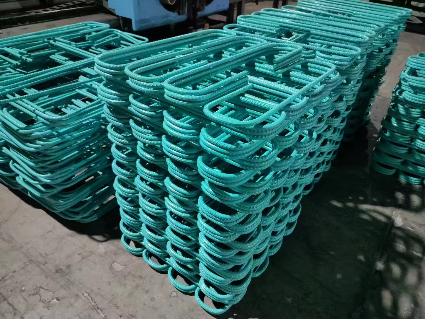 通過靜電噴涂工藝,在φ12mm-φ40mm的HRB400E/HRB500E螺紋鋼表面覆上一層0.15-0.3mm厚的環(huán)氧樹脂涂層,相當于給鋼筋穿上“納米級防護衣”:鹽霧環(huán)境下耐腐蝕性能提升10倍以上,混凝土保護層厚度可減少20%-30%,綜合使用壽命